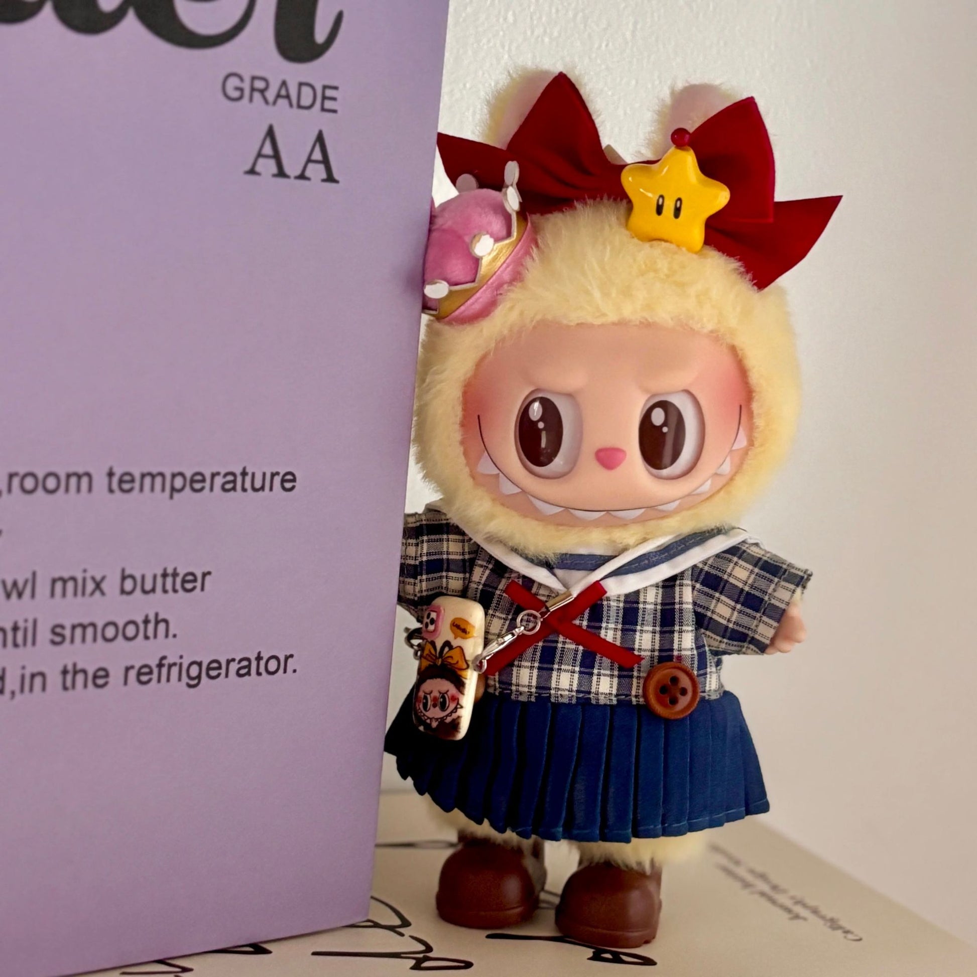 - Tags: academic theme, anime fashion, character accessories, collectible accessories, doll clothing, handmade outfit, Japanese culture, Japanese sailor outfit, Japanese style, kawaii collectibles, kawaii fashion, Labubu school uniform, plaid costume, plaid sailor dress, pleated skirt, red bow tie, sailor collar, school uniform costume, student uniform