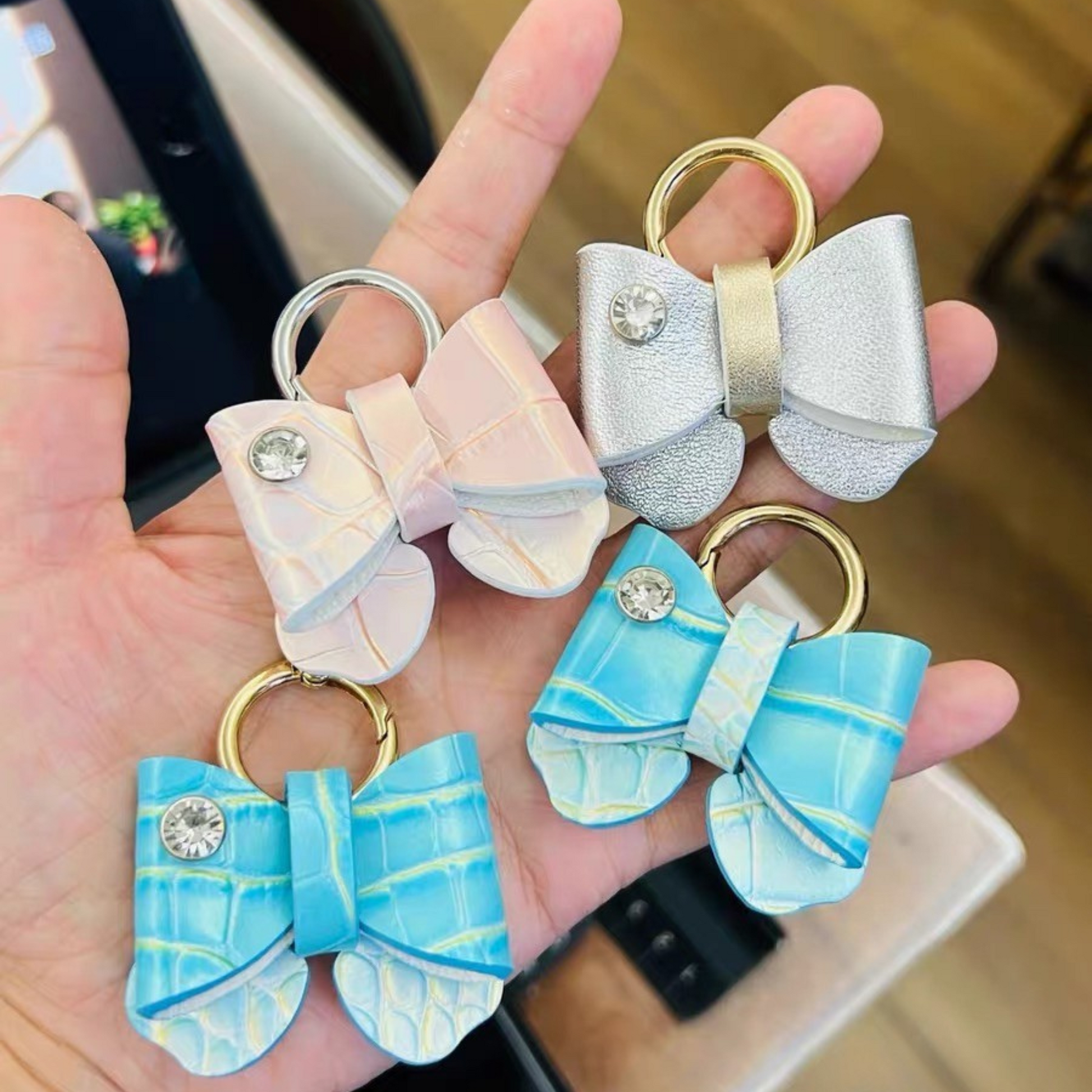 - Detachable Bow: Removable bow charm with secure gold keyring attachment